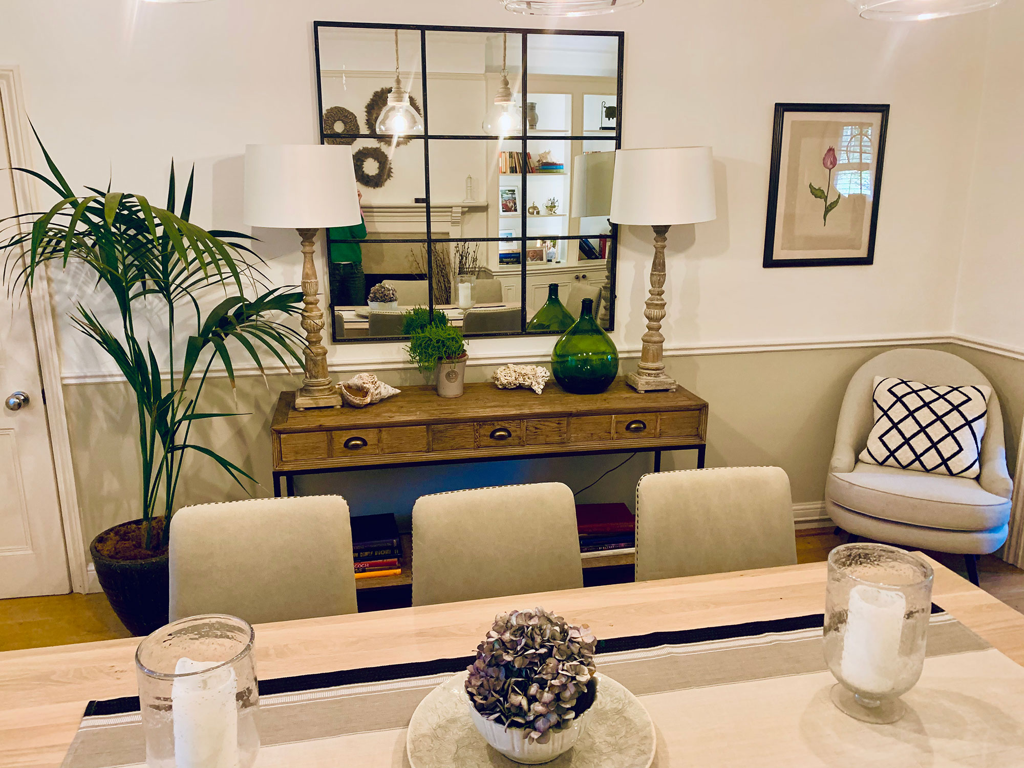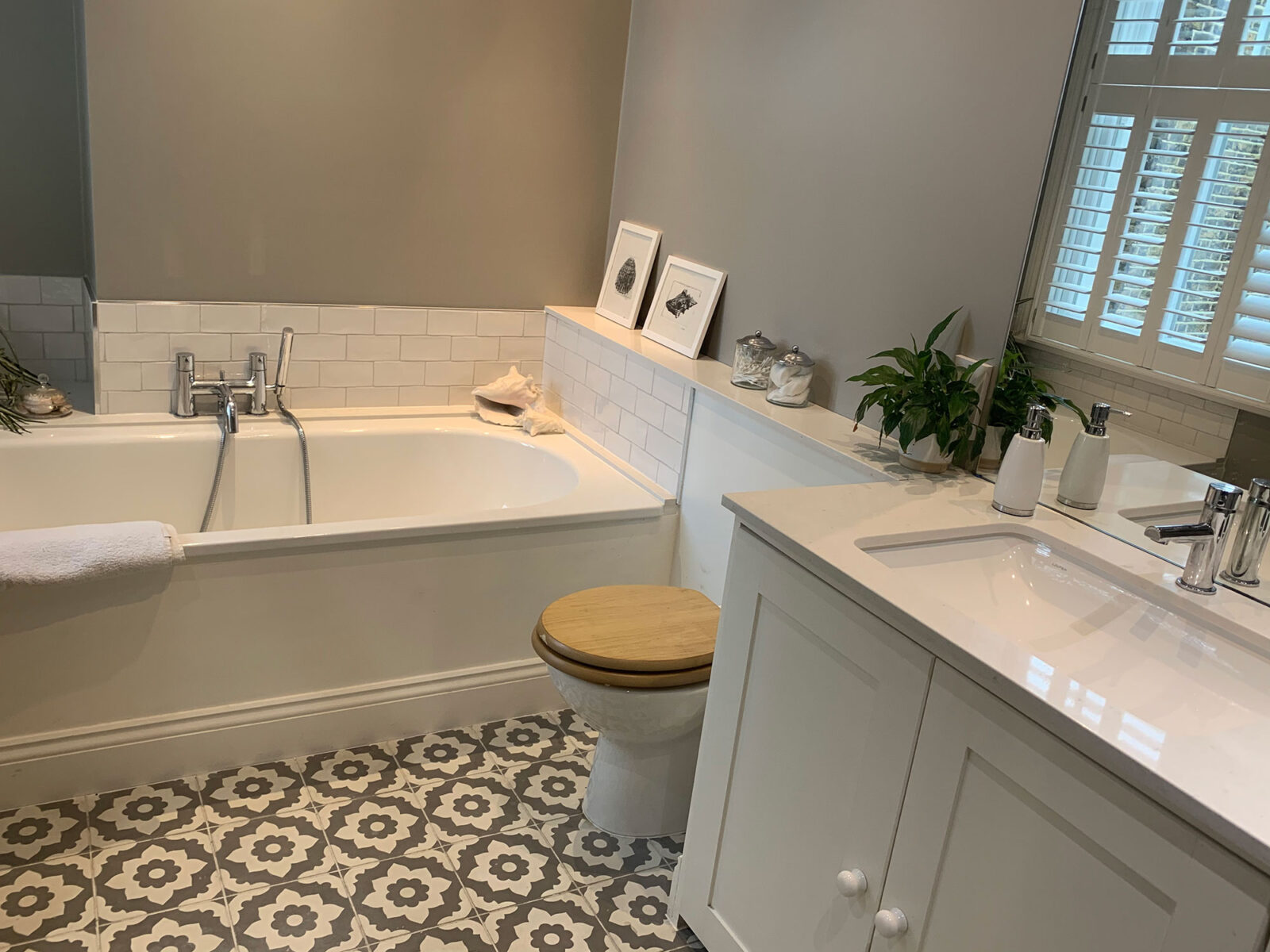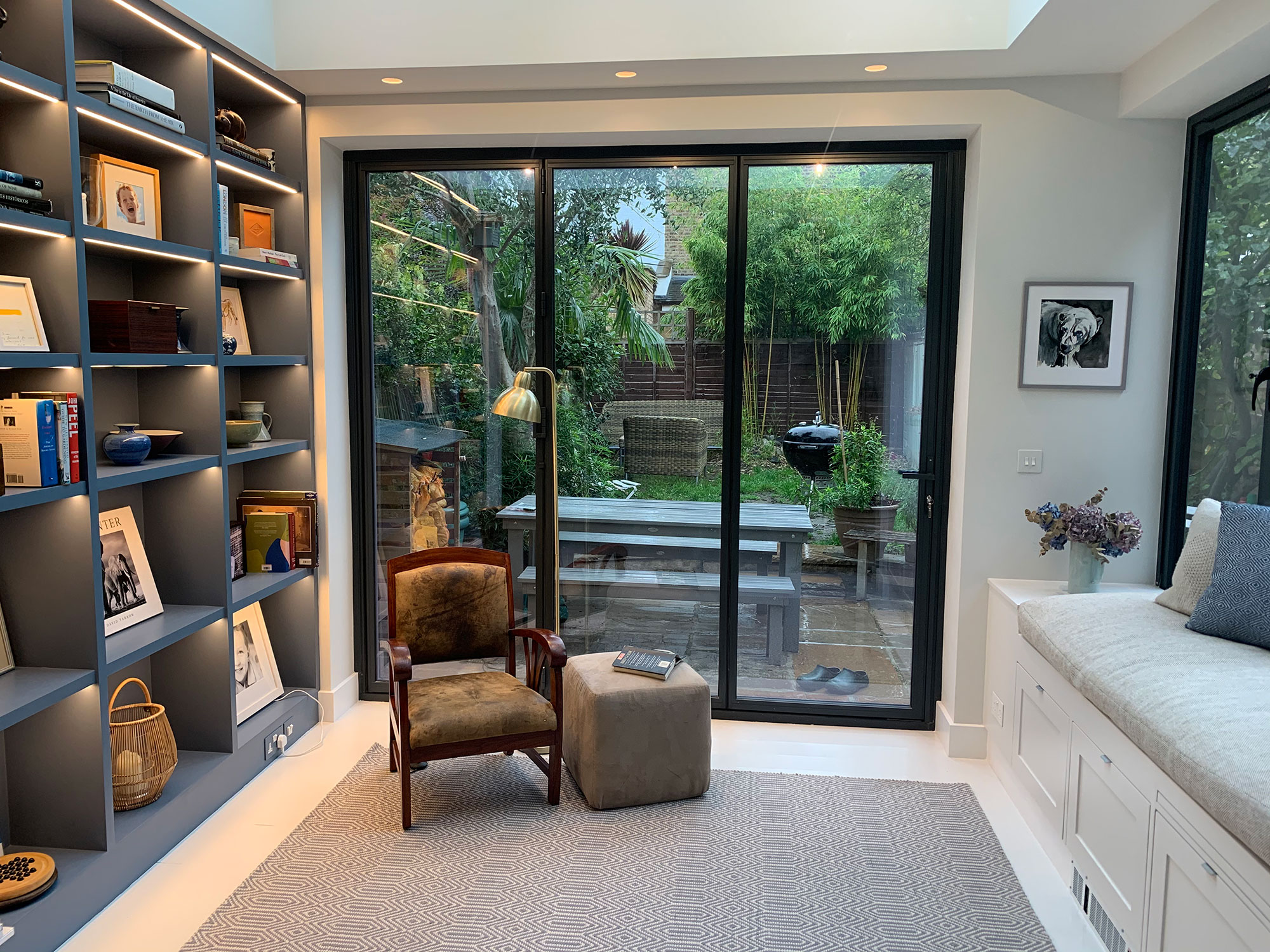 We built on an extension to the living room to be used as a reading room and updated bathrooms. The living/dining room was also updated and we worked around a few of the client’s existing pieces of furniture. The overall feeling the client wanted was friendly urban chic.