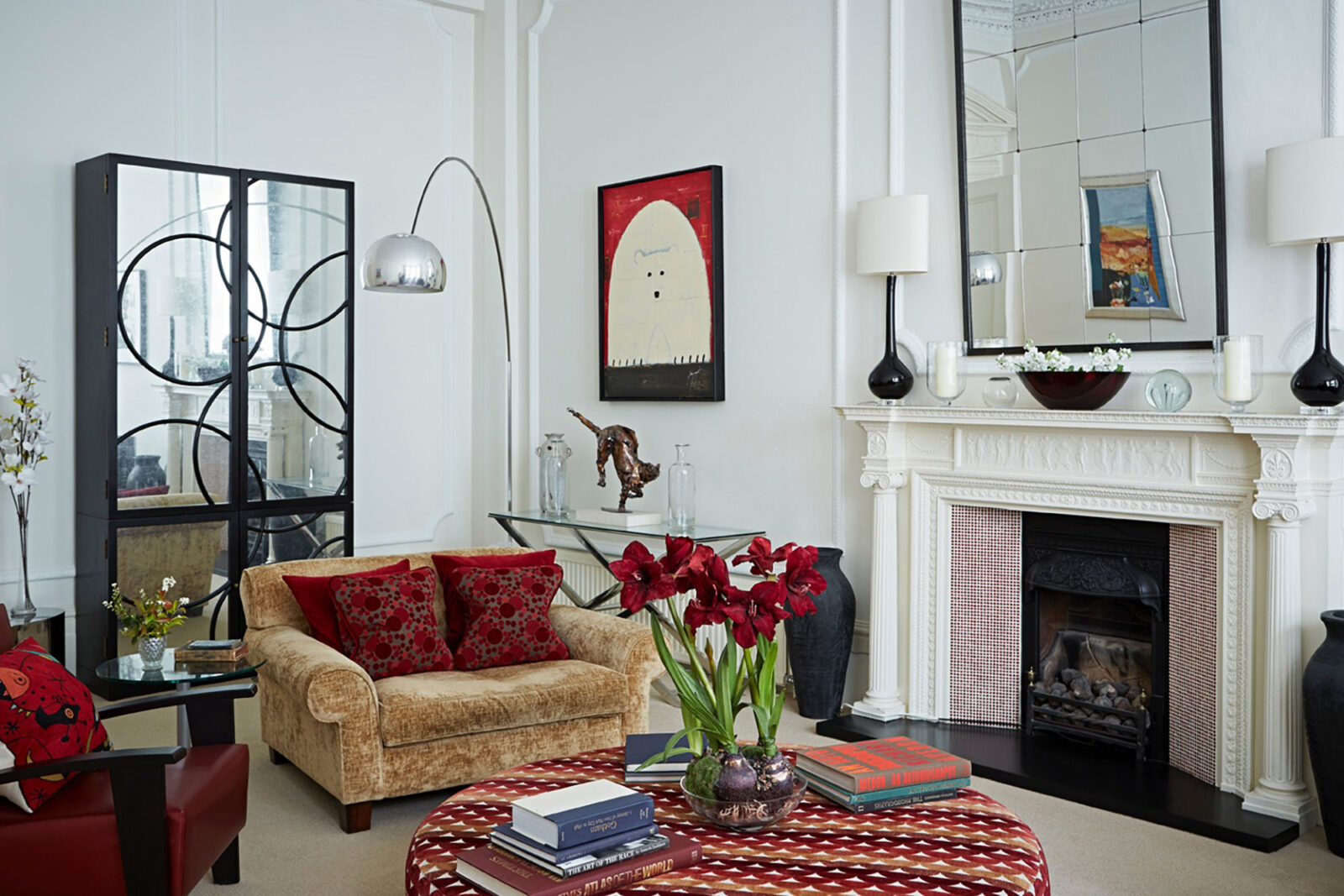 Notting hill apartment Magnificent height and space Fantastic height and space can be a challenge to fill. We used oversize statement pieces of furniture and artwork and large patterned wallpaper.